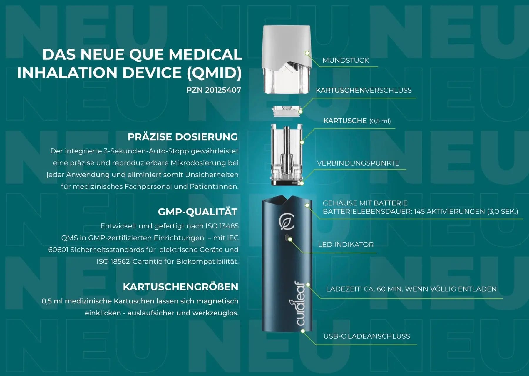 Medical Grade Inhaler für Curaleaf Vape Kartusche (QMID)